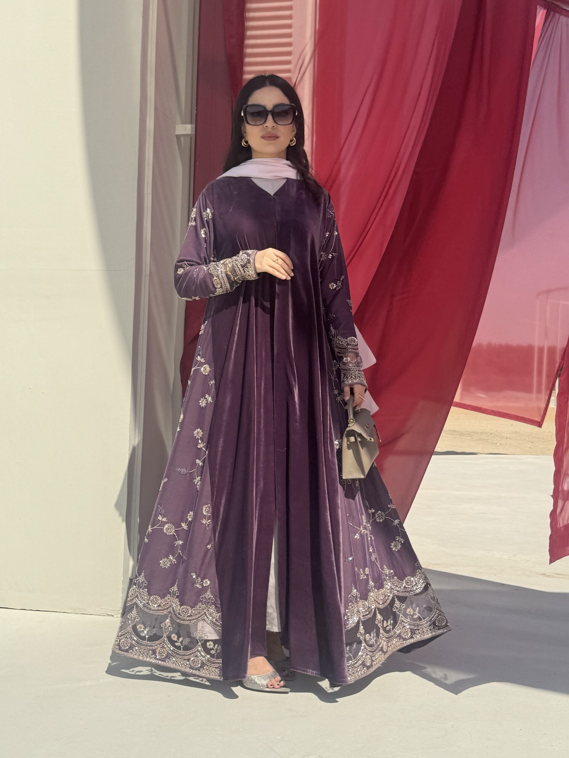 عباية مخملية شغل شك يدوي كريستال ياباني