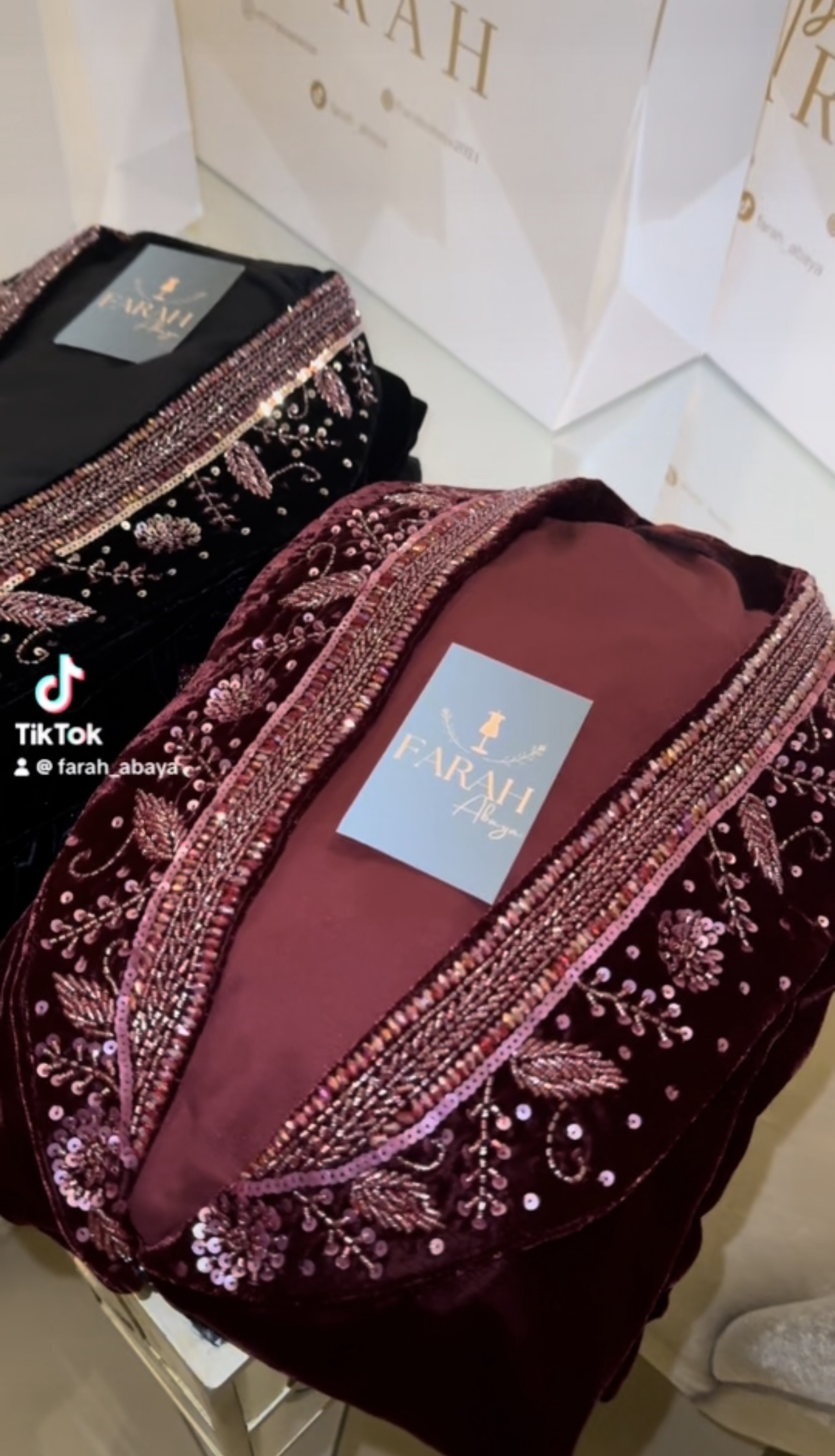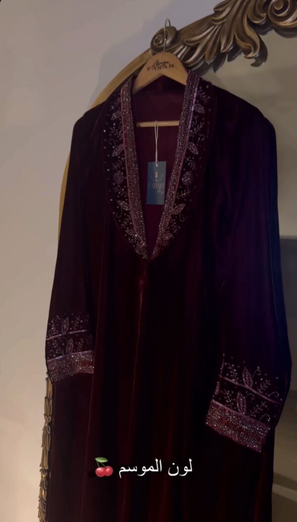 عباية مخملية شغل شك يدوي كريستال ياباني